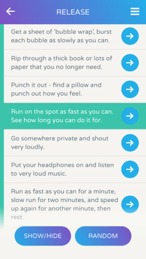 The app has a great idea in attempting to prompt users to participate in distracting activities while they ride out the urge to self harm. The app is quite passive, however, in that it expects users to complete each activity completely on their own. Some activities could easily be facilitated by the app but not so easily by a user. One, for example, involves rolling a dice. Whilst the app could easily incorporate a function to roll a dice, a user is very unlikely to have a dice on hand. In this way, I believe the app places a little too much onus on the user and does not deliver as much functionality as it could. That said, it functions well and is a great idea.