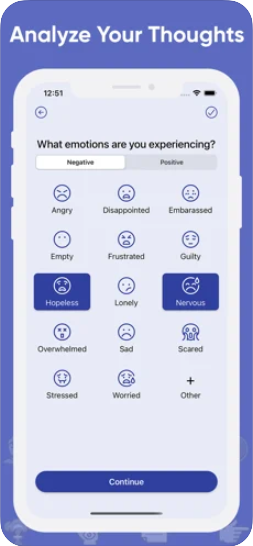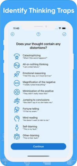 CBT Thought Diary is a good, but very basic, mood tracker that allows users to track negative thoughts and gratitude with a few learning options.