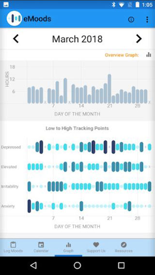 eMoods has been designed for individuals with bipolar disorder to track their symptoms, medication and mood. It is a great tool for those with a diagnosis of bipolar.