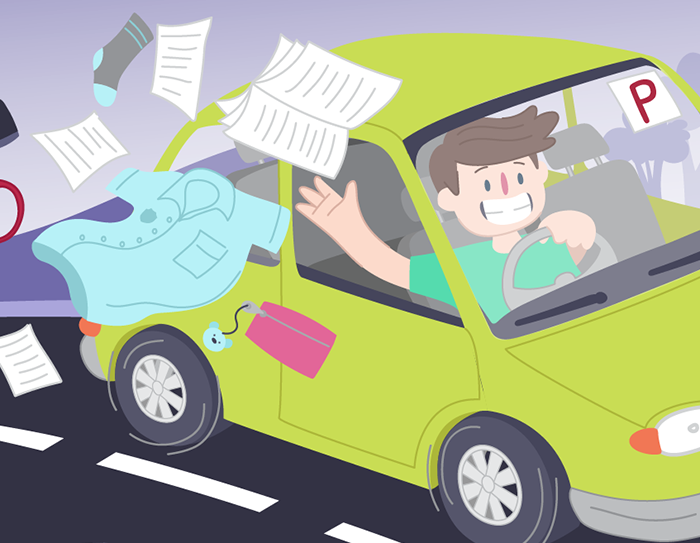 P plater throwing school stuff out of car window