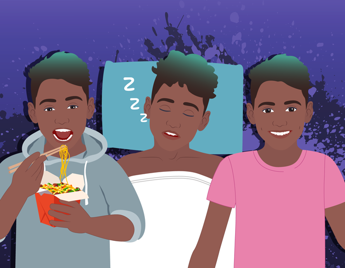 You need about 8-10 hours of sleep per night. That amount of sleep is harder to get than it sounds, because the ‘body clocks’ of teens and young adults naturally keep them up late at night and make them want to sleep in until mid-morning.