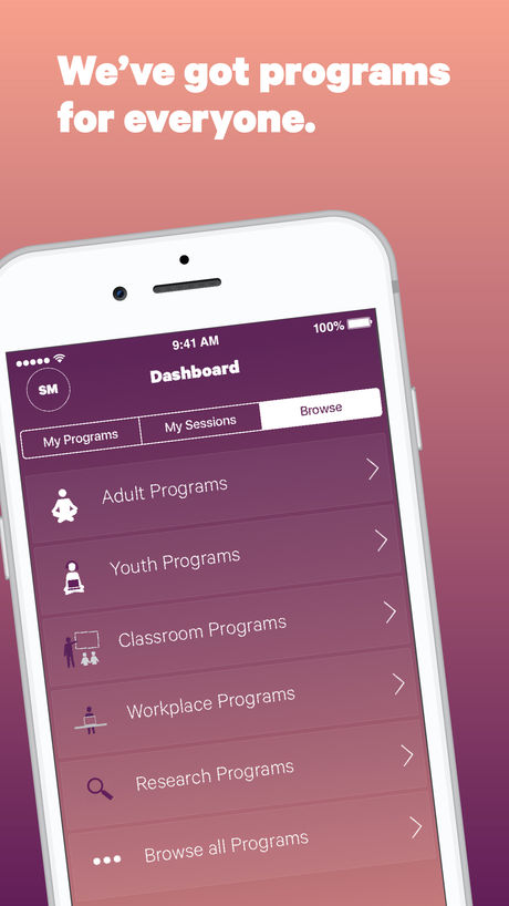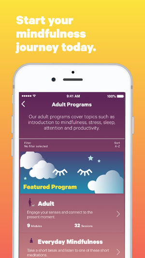 Designed by psychologists and educators, Smiling Mind is very well developed and designed mindfulness meditation app. It's a very pleasant app to use and has a simple, clean and calming interface. With an age range from seven upwards, Smiling Mind caters for all ages with a variety of meditations available for everyone to do at different stages of their lives. A highly recommended app with it's effectiveness starting to be backed up with research.